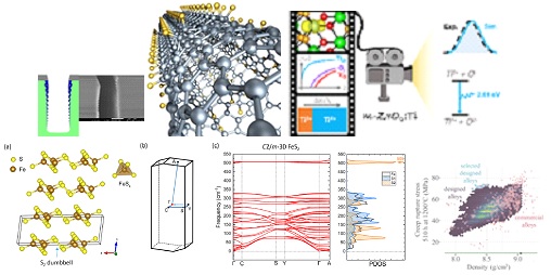 - Calculs de prédiction sur les matériaux (algorithmes évolutionnaires : codes maison et USPEX, deep/machine learning et data mining avec python et les librairies TensorFlow et Keras, logiciel Calphad Thermo-Calc),