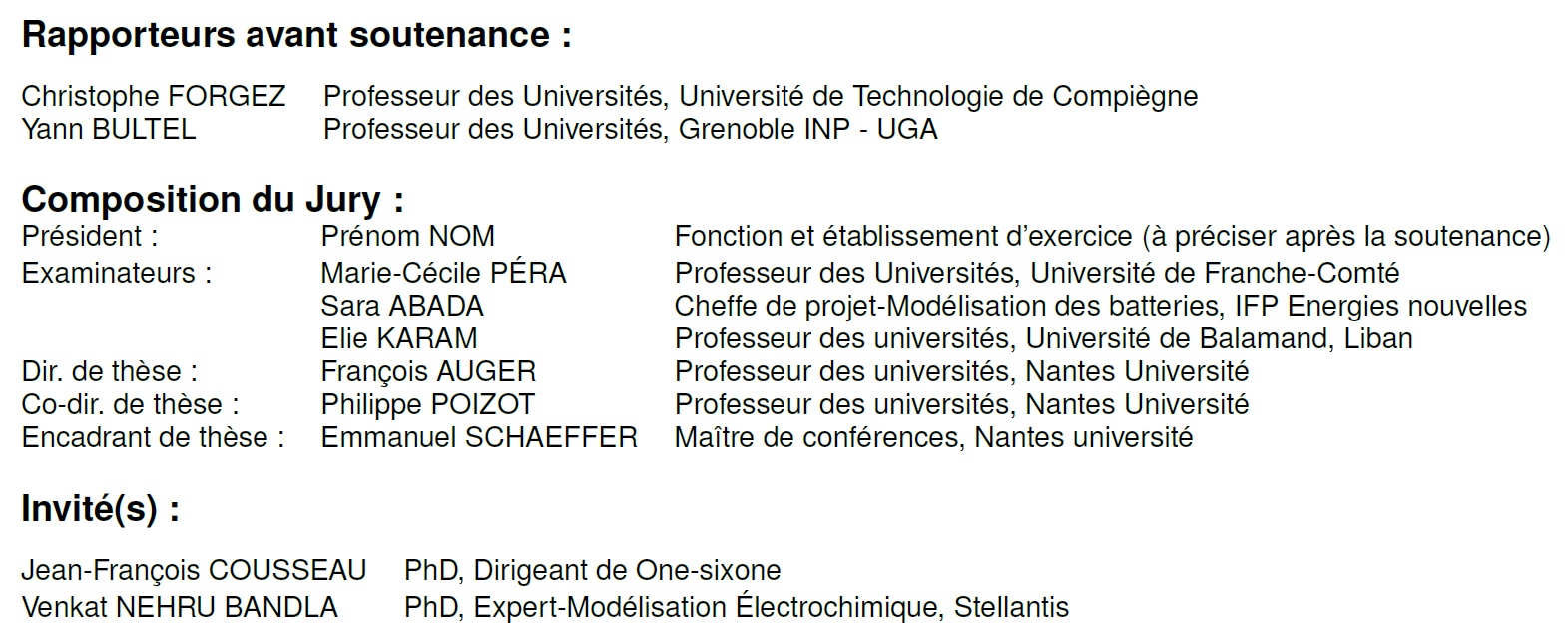 Keywords : Lithium-ion battery, Fast charging, Pseudo-2D model, Parametrization, Homogenization Technique, Lithium plating