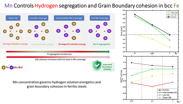 - [1] Ravi Raj, Drew Evans, Nikki Stanford and Isabelle Braems , Grain Boundary-specific effects of Mn concentration on hydrogen trapping and embrittlement in bcc Fe: A spin-polarised DFT study, M aterials Science & Engineering A (submitted)