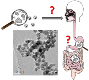 Notre objectif est de caractériser différents additifs alimentaires, tels que le dioxyde de titane (E171), l’argent colloïdal et les phosphates de calcium (E341), qui sont actuellement présents sous forme de nanoparticules dans différentes formulations alimentaires (confiseries, laits infantiles), ou pharmaceutiques. Nous déterminons dans un premier temps les caractéristiques physico-chimiques de ces composés par un large panel de techniques (microscopie électronique, spectroscopies infrarouge, Raman, RMN du solide, XPS, diffraction des rayons X, UV-visible, etc.). Nous analysons dans un deuxième temps leurs propriétés aux interfaces avec les milieux biologiques, et identifions leurs interactions avec des molécules présentes dans le système digestif (protéines, enzymes) ou au niveau des parois cellulaires (phospholipides), grâce à des isothermes d’adsorption, par des mesures de potentiel zêta, et à l’aide d’outils spectroscopiques permettant de sonder la surface des particules.